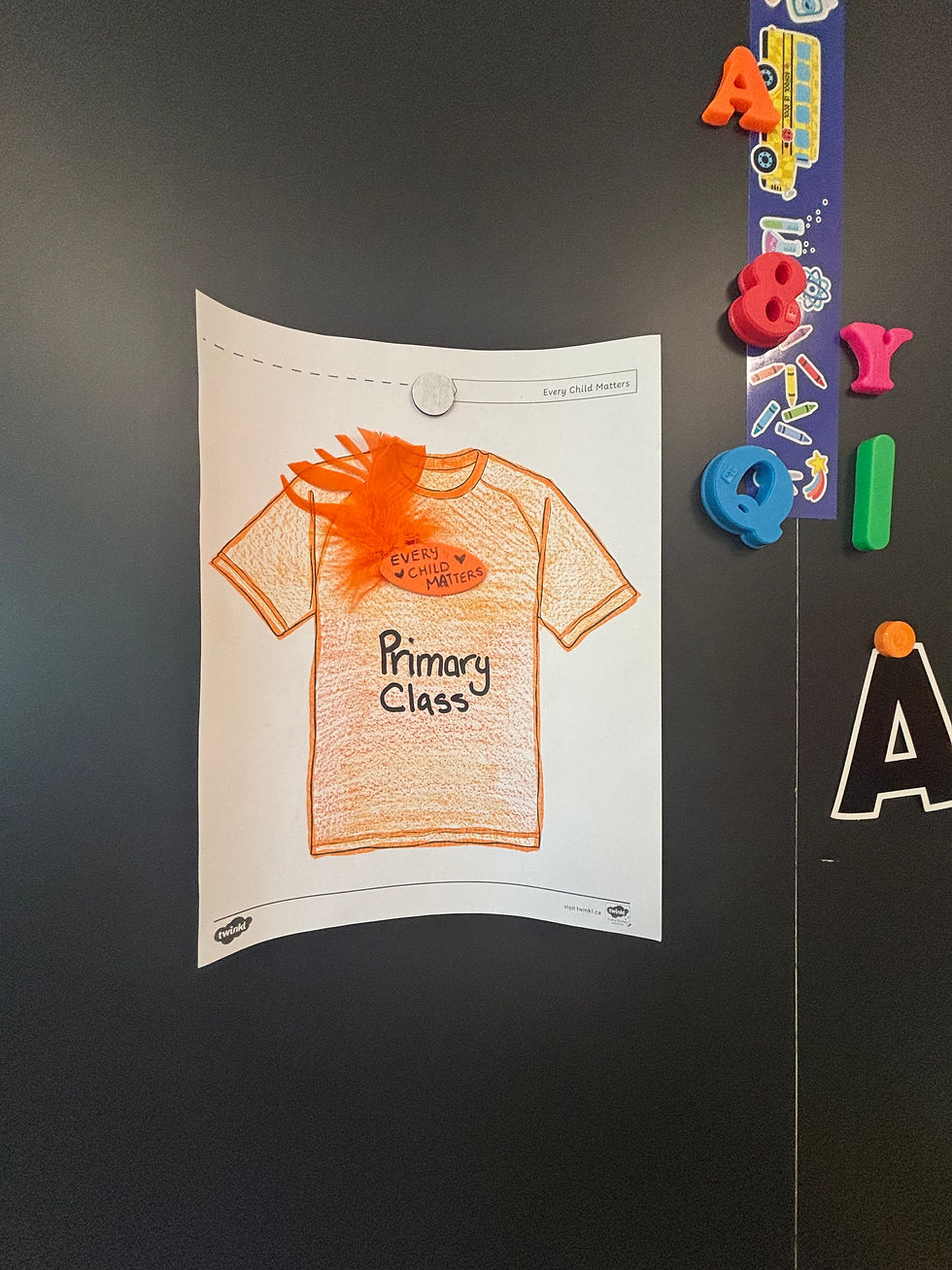 The orange shirt symbolizes the loss of culture, freedom, and self-esteem that many Indigenous children experienced. This day reminds us that “Every Child Matters”.